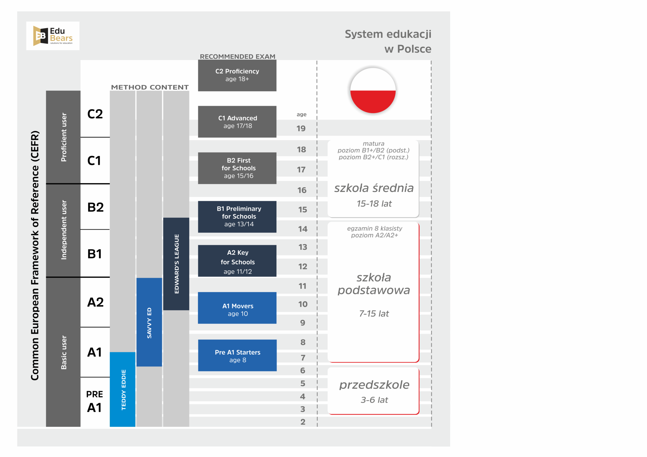 Po zakończeniu tego etapu edukacyjnego, na poziomie 1 klasy szkoły podstawowej, uczeń przechodzi obowiązkowe testy kwalifikacyjne, na podstawie których jest kierowany przez metodyka szkoły na jedną z dwóch dostępnych ścieżek kontynuacji - albo idzie dalej ścieżką misiową i kontynuuje naukę na kursie Savvy Ed albo idzie ścieżką elastyczną na kursie ToTu! English Kids.